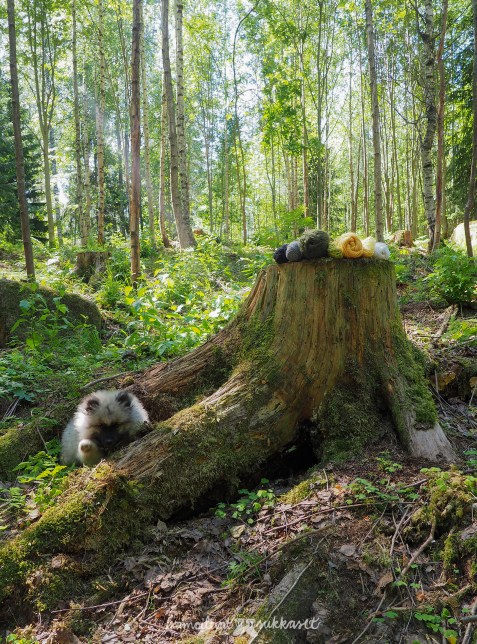 Tämä ensimmäinen blogikirjoitus merkkaa Samoilevien sukkasten ensiaskeleita. Pitkäksi tämä ei tällä erää vielä venähdä mutta muutama kuva ja lause siitä mikä projekti on ensimmäisenä toteutettavaksi mielessä. Alla kuvia joissa materiaalit metsässä ja retkeilyapurikoira Hymy siellä ympärillä kieriskelemässä ja vilkuttelemassa. Tämä postaus tulee (ja muutamat seuraavatkin) hieman jälkijunassa sillä kesä on mennyt muuttokuormaa kasatessa ja sitten purkaessa, joten aikaa kaikelle muulle on jäänyt tosi vähän. Mutta eiköhän tämä tästä nyt ala pikkuhiljaa hahmottua! 🙂