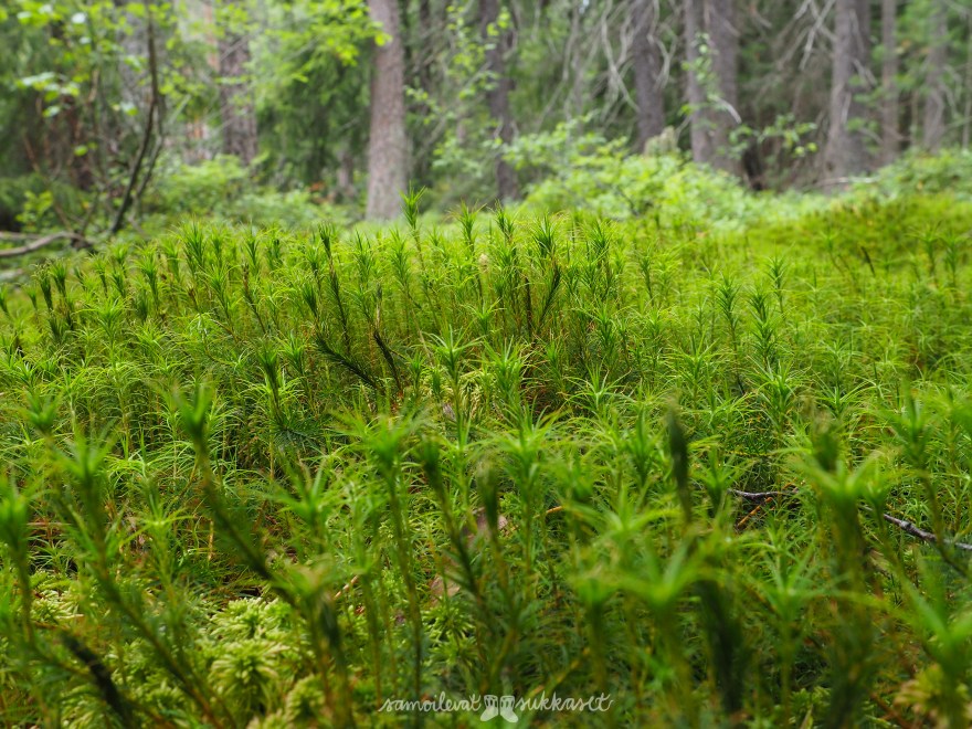 Evästauolla Hymy sai ruoka-annoksensa lisäksi luun, joka hävisi parempiin suihin alta aika yksikön. Hän myös ihasteli kaikessa rauhassa ympäröivää metsää kalliolta kunnes lähdimme tutkailemaan erilaisia kasveja polun varrelta. Löytyi näitä tavallisia: maitohorsma, metsämaitikka ja kissankello. Ei paha ollenkaan, kauniita kukkia kaikki! Sää oli tällä kertaa melkoisen pilvinen, vaikkakin sopivan lämmin. Kun päästiin kotiin Hymy simahti samantien sohvan viereen nukkumaan. Olihan päivä ollut reilun 2 kk:n ikäiselle pitkä ja tapahtumarikas.